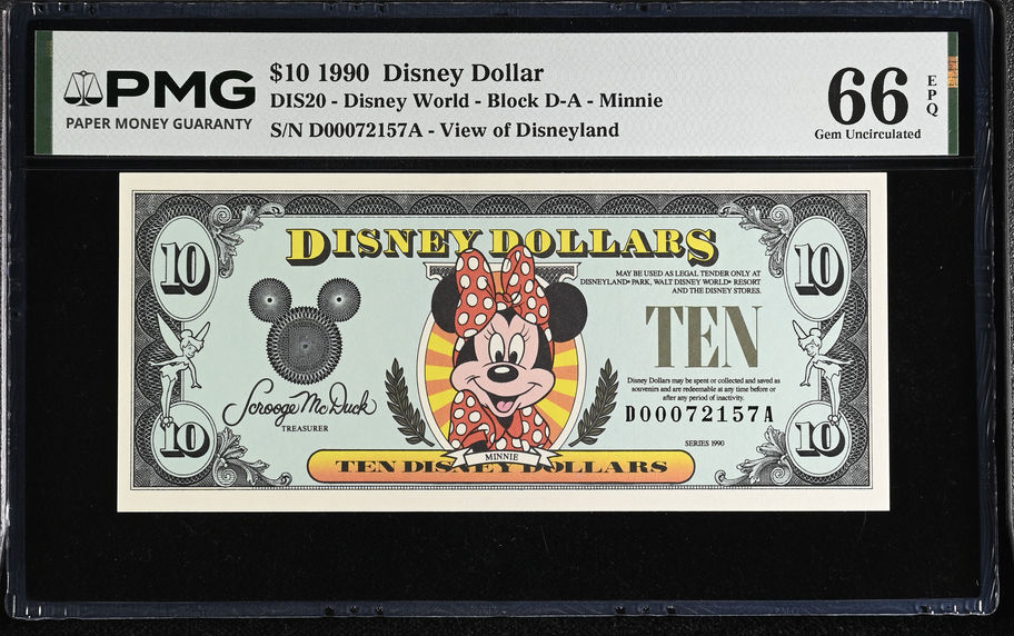 1990 DA Series $10 Minnie Disney Dollar - PMG 66 EPQ