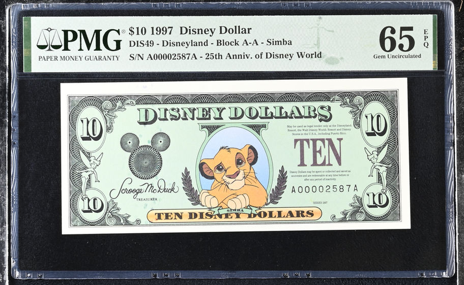1997 AA Series $10 Simba Disney Dollar - PMG 65 Gem Unc. EPQ