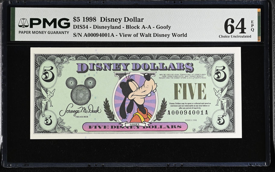 1998 Goofy Disney Dollar $5.00 - PMG 64 Gem EPQ