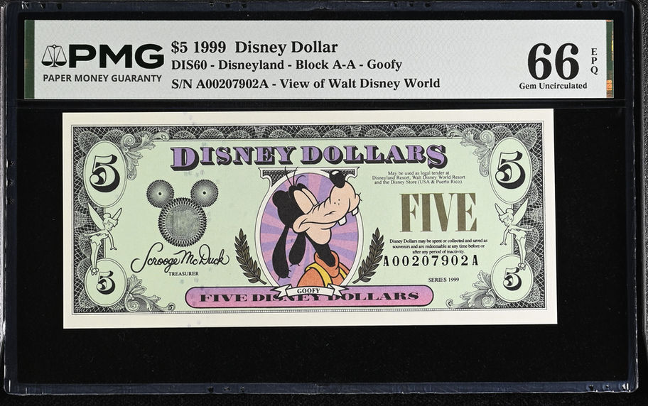 1999 AA Series Closed-Eyed Goofy Disney Dollar - PMG 66 Gem Unc. EPQ