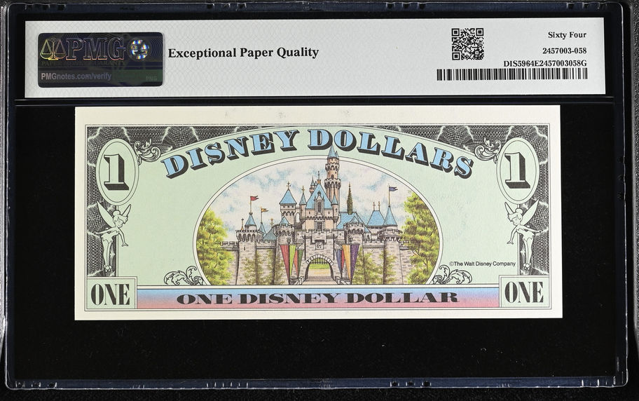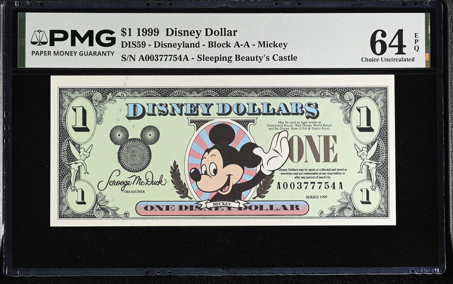 1999 "AA Series" Mickey $1 Disney Dollar - PMG 64 Choice Unc. EPQ