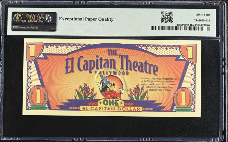 2001 "A Series" El Capitan Theatre $1 Disney Dollar - "Special Printing" PMG 64