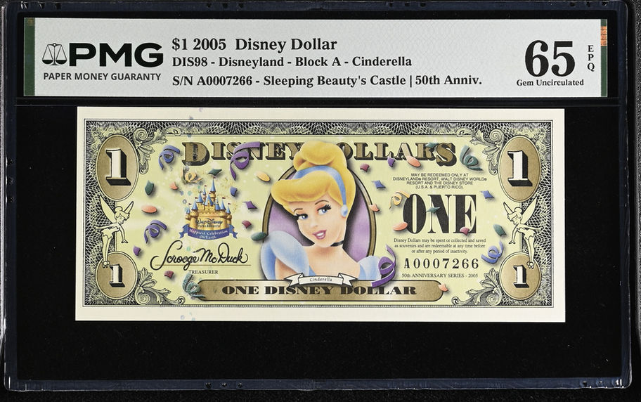 2005 Cinderella Disney Dollar $1.00 - PMG 65 Gem Uncirculated EPQ