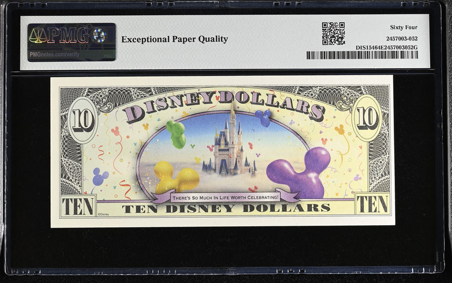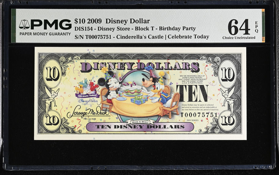 2009 "Birthday Party "T Series" $10 Disney Dollar - PMG 64 Choice Unc.
