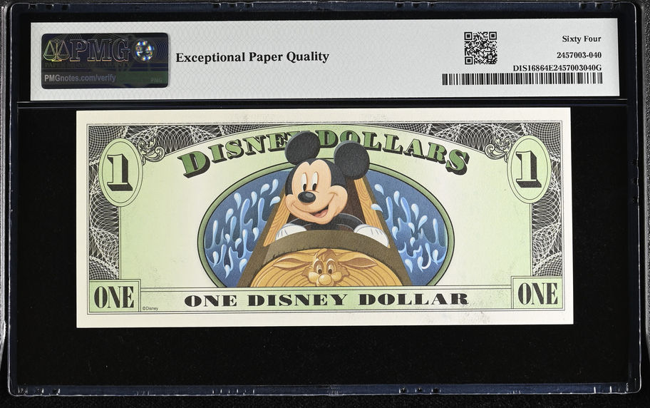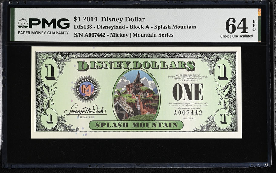 2014 Splash Mountain Disney Dollar $1.00 - PMG 64 Choice Unc.