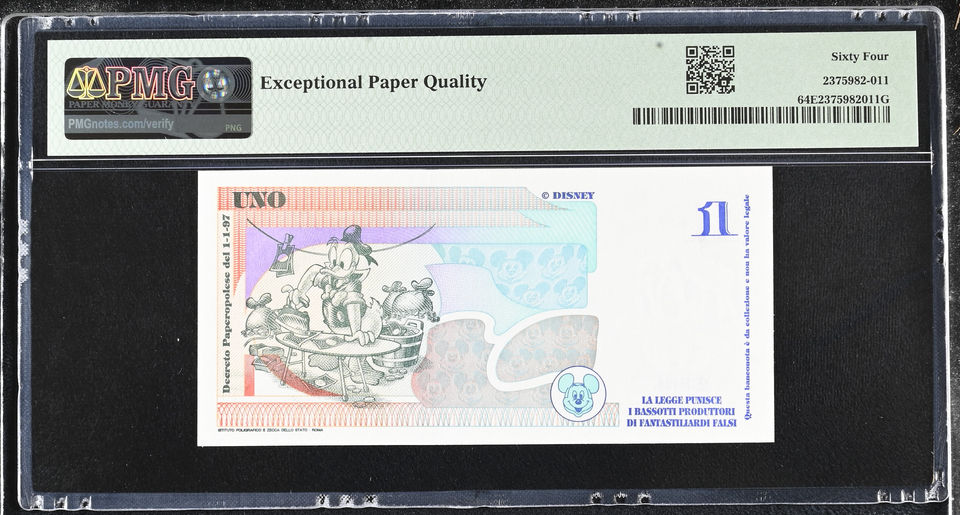 Paperino - Donald - Italy Dollar Fantastiliardi - $1 - PMG 64 Choice Unc. E